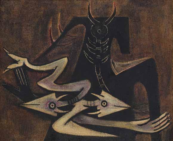 René Portocarrero Figura para una mitología imaginaria (Figure for an imaginary mythology), 1945. Gouache on paper laid on cardboard, 36 x 27 in. Private Collection