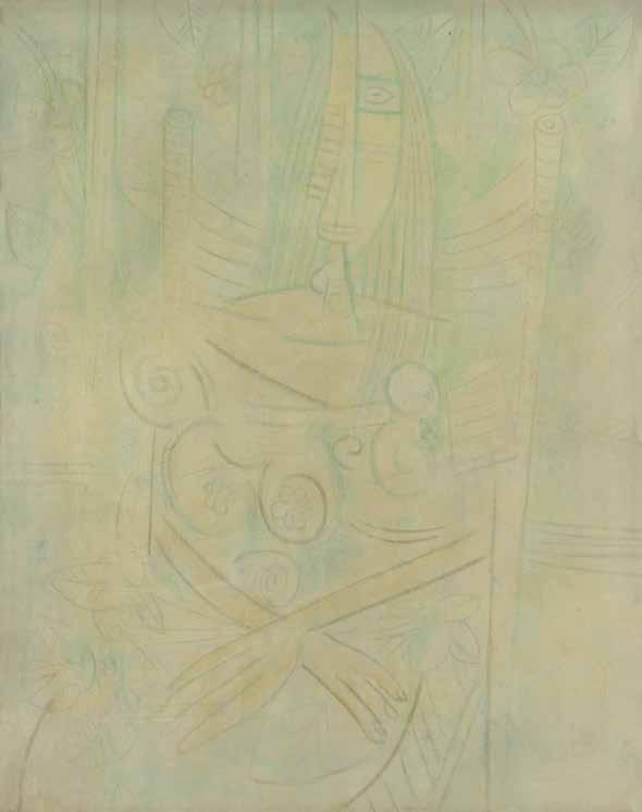 “Lam has at this point in his aesthetic journey, that ultimately reached Paris, integrated the lessons of the contemporary French masters with his native heritage… The Wizard of the Ocean is grimly stark, employing an overwhelming central form to great effect. The Warrior is marked by universal feeling.”5