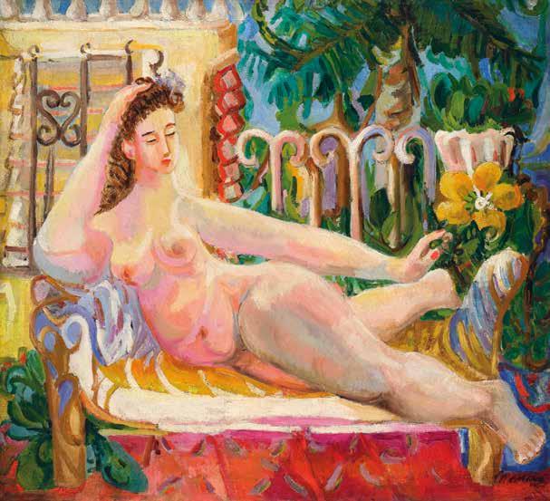 Mariano Rodríguez Desnudo reclinado en el jardín (Reclining Nude in Garden), 1942. Oil on canvas, 33 x 36 in.