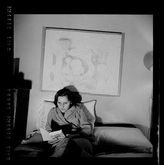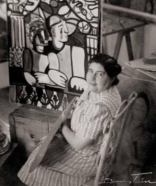Amelia Peláez in her studio, Havana, ca. 1943 - 45. In the background: Los novios (1945)