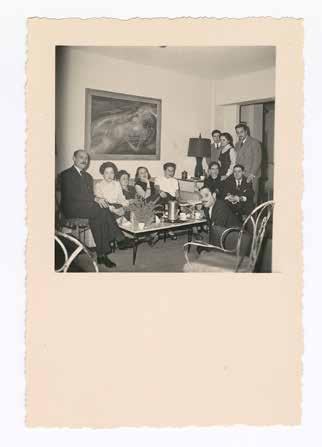 Gathering at the Home of Ramón Osuna Sr. and Lydia Plá, late 1940s early 50s. Among those present are Ramón Osuna Sr., Attaché at the Embassy of Cuba in Washington; Lydia Plá de Osuna; Ramón Osuna Jr.; Felipe Orlando and his wife, Concha Barreto; Luis Martínez Pedro and his wife, Gertrude Ludtke and José Gómez Sicre with his wife Lucía Ballarin. Visible in the background is Nude (1940) by Carlos Enríquez, a work previously exhibited in Modern Cuban Painters (Museum of Modern Art, New York, 1944). Vintage gelatin silver prints, 4 × 2 ½ in. each. Courtesy of the José Gómez Sicre Visual Archives, Miami, FL