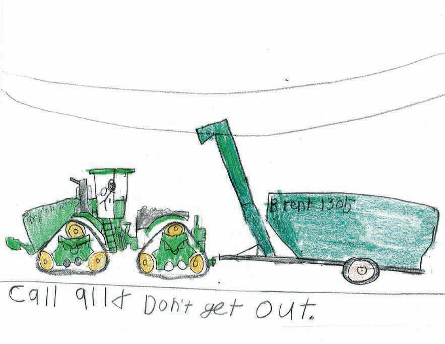 Hobie Klein warns farmers to call 911 and don’t get out of the tractor if contact is made with a power line. Hobie’s parents are Dean and Karey Klein, members of Sioux Valley Energy.