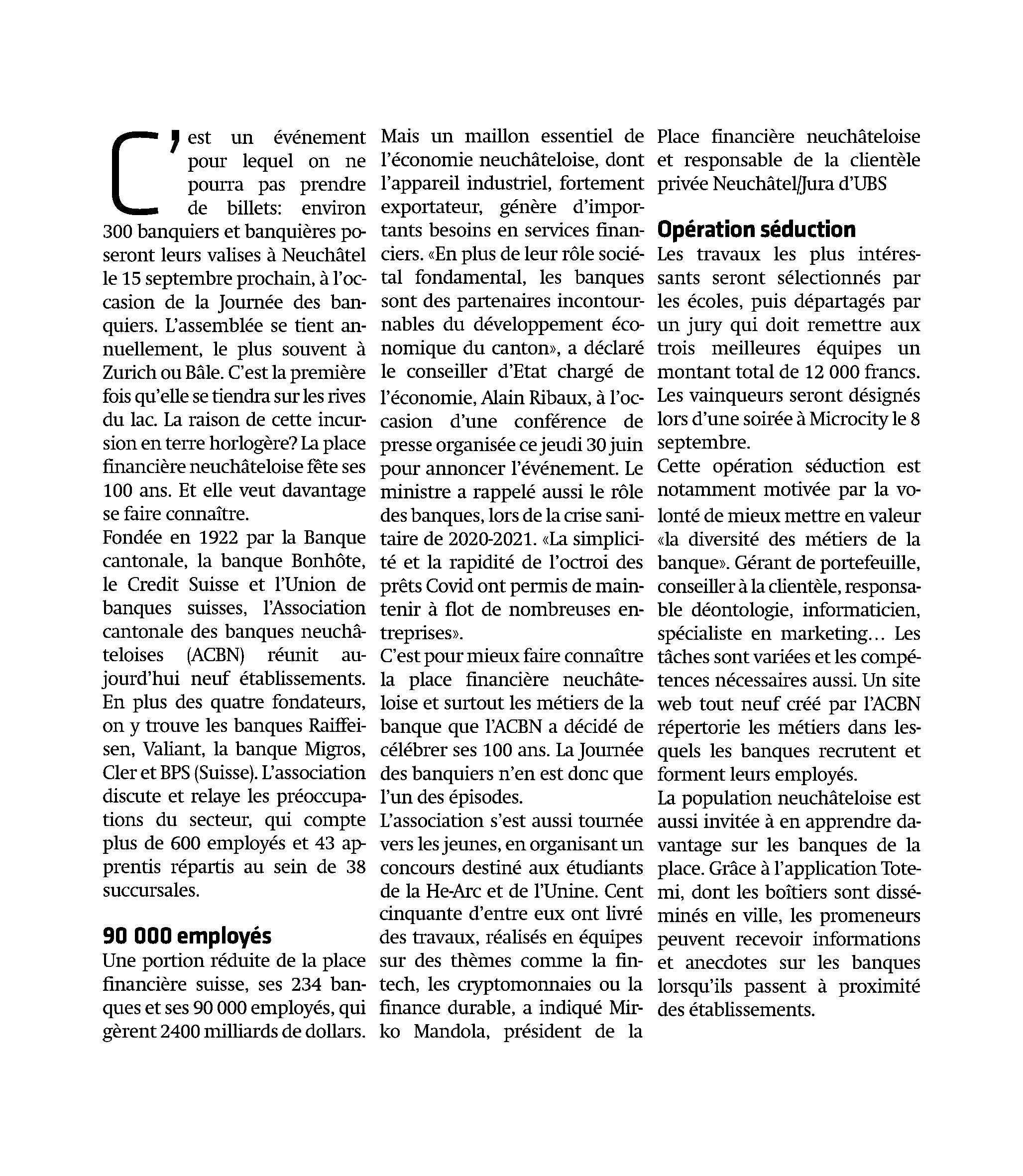EntantqueNeuchâtelois,ce rôledebanqueancréeavant toutàNeuchâtelvoustientà cœur?
