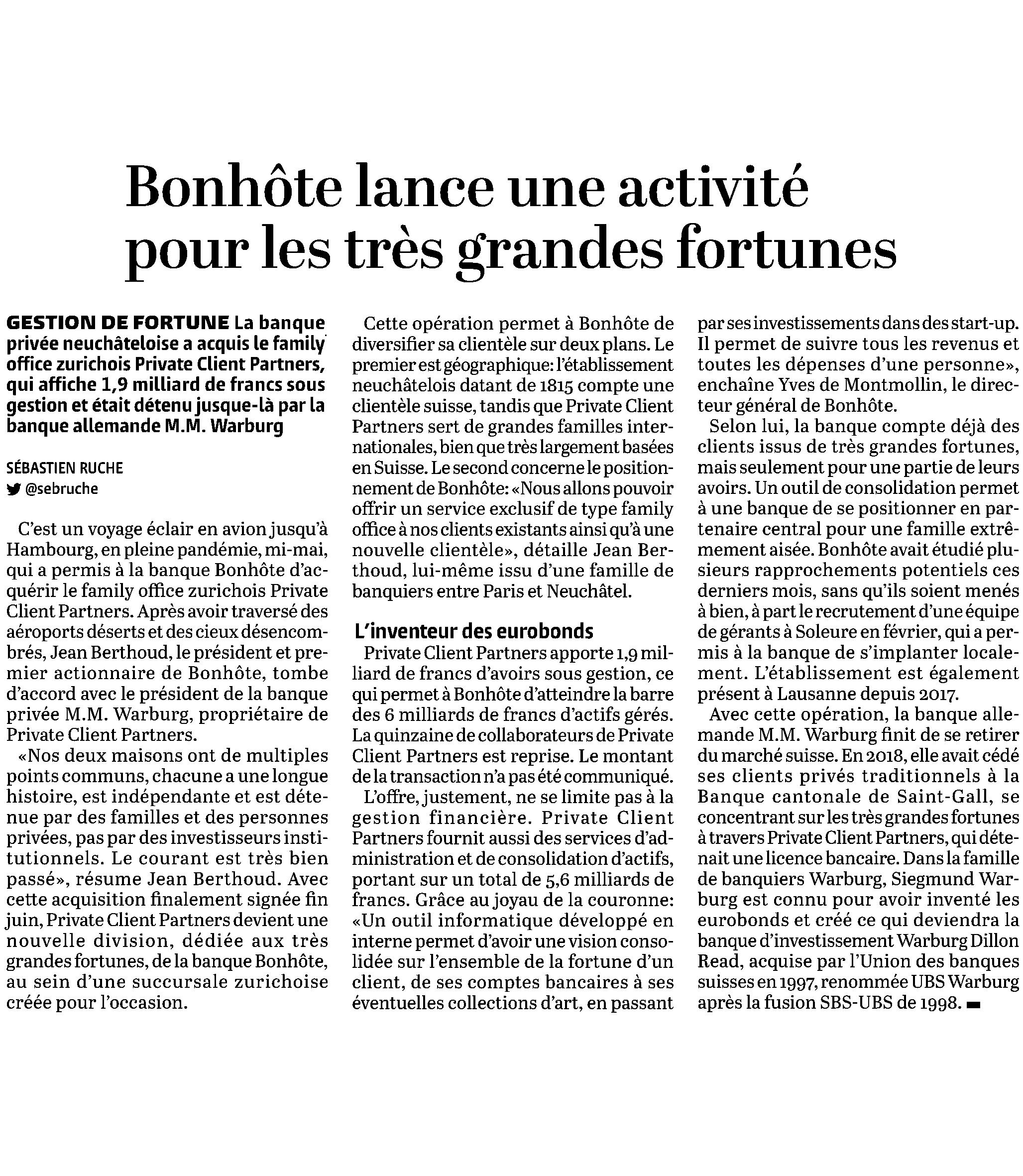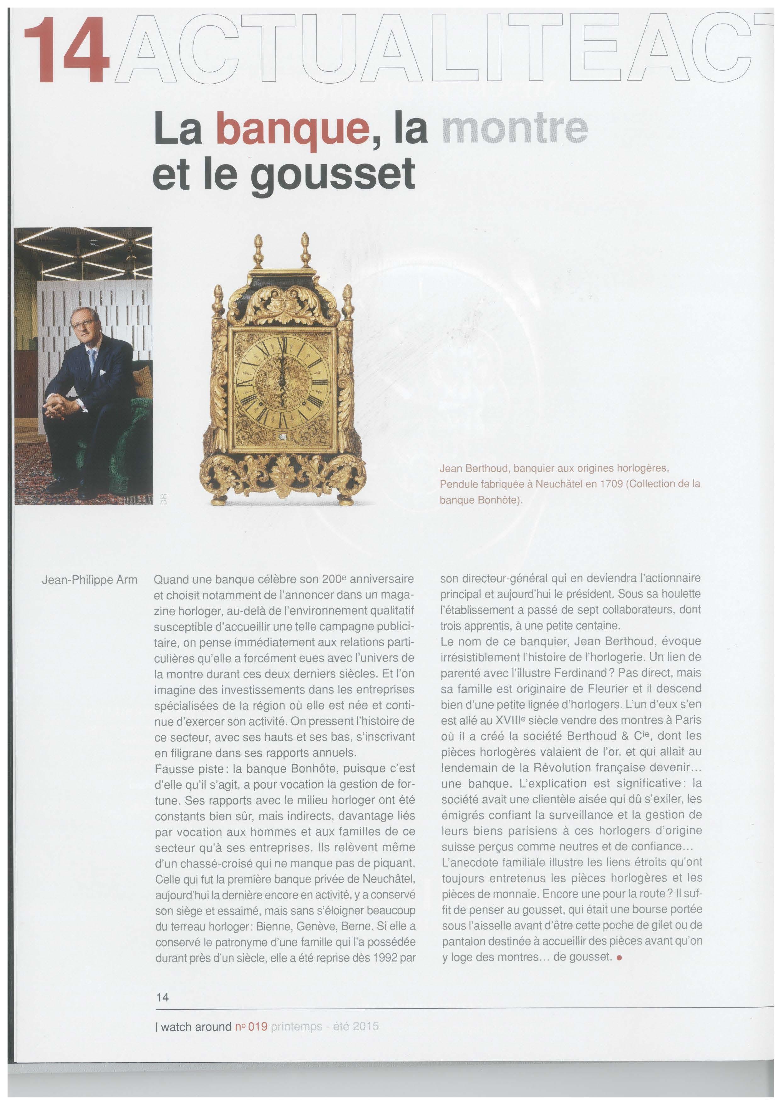 Die erste Pnvatbank l n Neu c hâtel wurde 1815 von Louis Pet itmaître gegrùndet. 1872 trat sei n Sohn Louis die Nachfol ge an 1895 eroffnete dessen Kassi erer geme1nsam m it Paul Bonhôte die Banque Antenen Bonhôte & Cie, die 1903 zur Banque Bonhôte & Cie wurde lm Jahr 1936 trat Claude Bonhôte die Nachfolge seines Vaters an Er leitete die Bank, bis er s ie 1988 an eine lokale Finanz- und Industrie Holding verkaufte Jean Berthoud stammt aus einer Neuenburger Bankiersfamilie , deren Herkunft sich bis 1785 zurü c kverfolgen lâsst. 1992 übernahm er, m it ihm nahestehenden Personen, über ein Management - Buy-out das gesamte Kapital und gab dem Finanzinst1tut seinen Charakter ais Privatbank zuruck Yves O. de Montmollin übernahm 2014 die Generaldirektion der Bank
