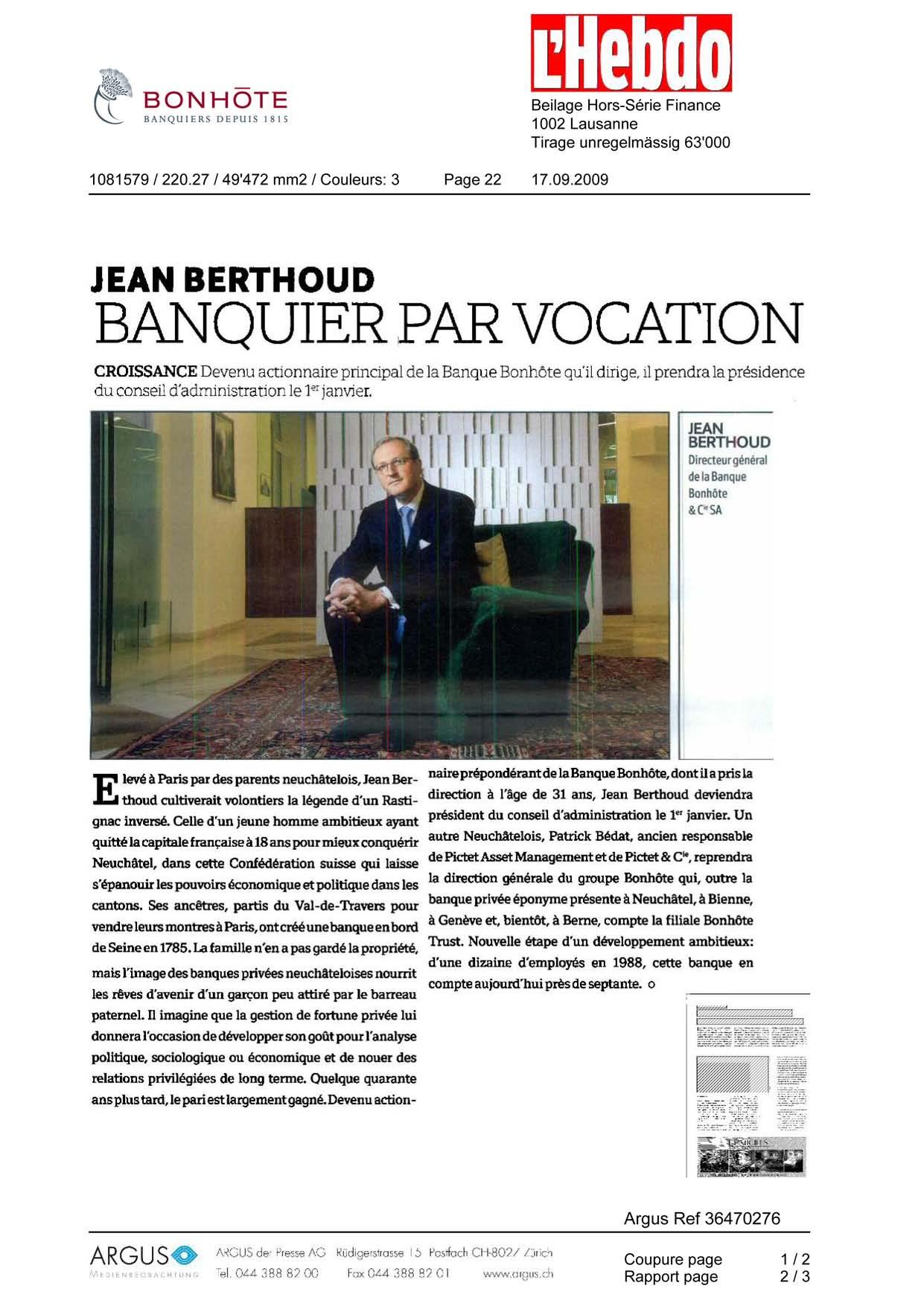 BONHOTE BANQUIERS DEPU I S 1815 1081579 / 220.27 / 49'472 mm2 / Couleurs : 3 JEAN BERTHOUD Page 22