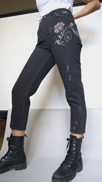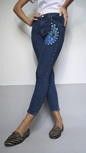 This unique motif on jeans was handpainted by Farnoosh, a woman refugee fromIran.Bypurchasingthis product you are supporting women refugees, we dedicate50%profittothem.