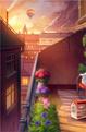 "Förlagshuset ligger som ett fartyg förtöjt mitt i stan, en stor ljus byggnad som kröns av en takterrass. Fasaden är ett rutnät av trä och granit, i vinden vajar aggor med ett snirkligt men bestämt R på. R som i Rydéns. Det är på takterrassen festerna hålls. Det känns som att man äger hela stan när man står där uppe, som att allt ligger för ens fötter. Långsamt omsluts man av skymningen som kryper närmare medan sorlet från gästerna blir högre och de många ljusslingorna tänds.”