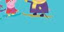 Ut på tur, aldrig sur! Fröken Gasell lär Greta Gris och hennes vänner att åka skidor. Det är inte så lätt alla gånger men också väldigt kul. Ingen av dem kan motstå en tävling så frågan är: vem kommer att åka snabbast nerför Snöiga berget och vinna prispokalen? Se upp i backen!