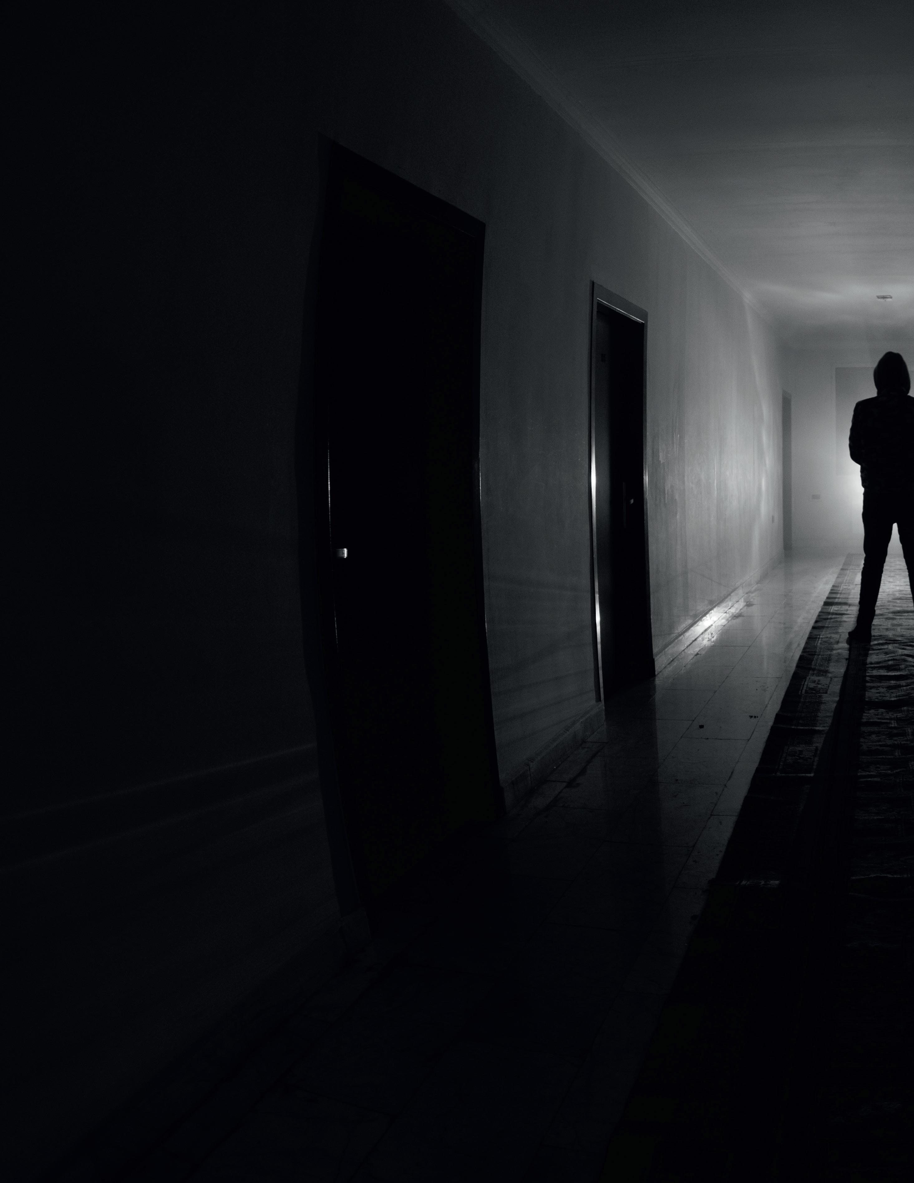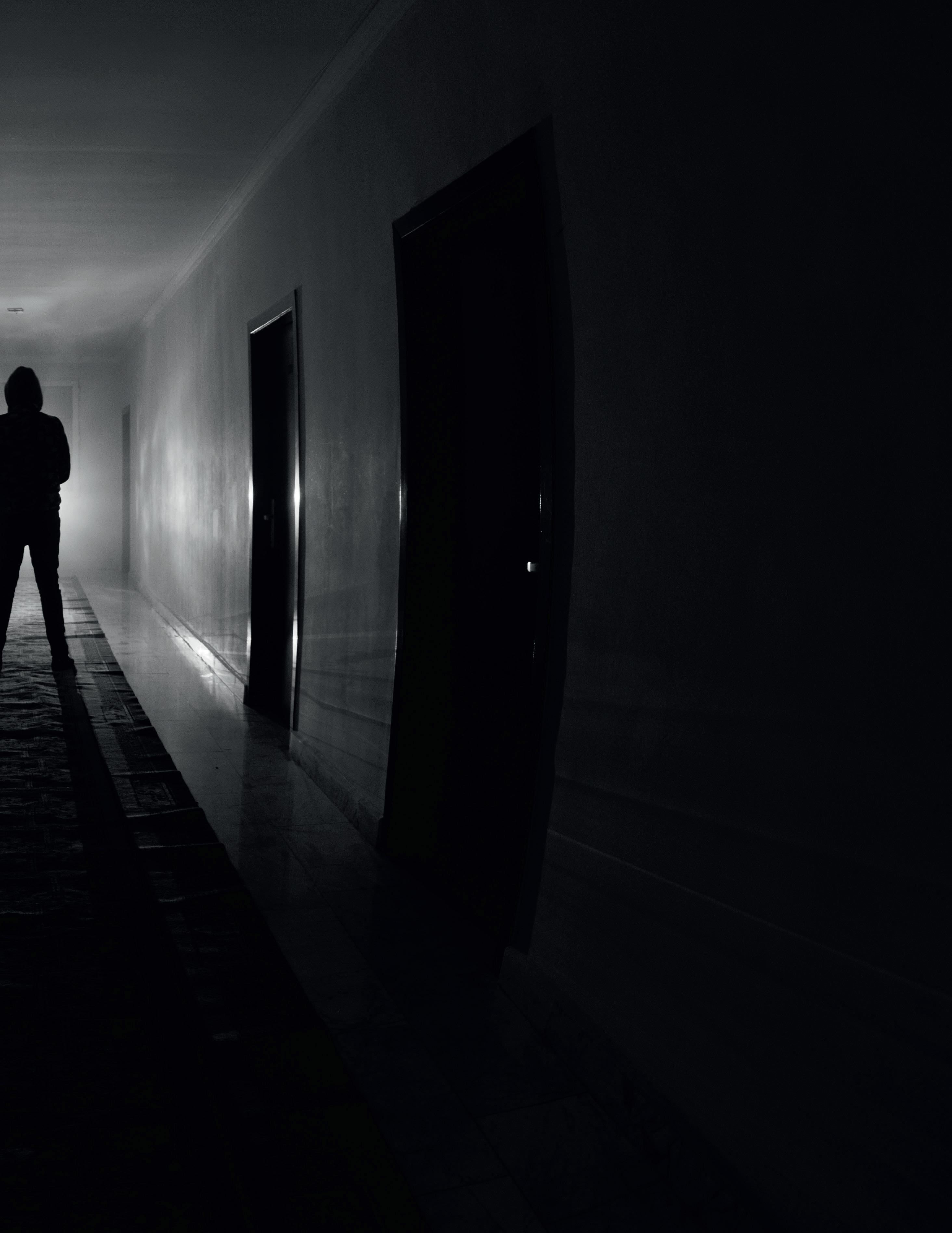 Då kommer tanken att det kanske inte är en av hans klasskamrater, utan någon annan som deltar i leken. I samma stund hör han ljudet av tunga andetag …