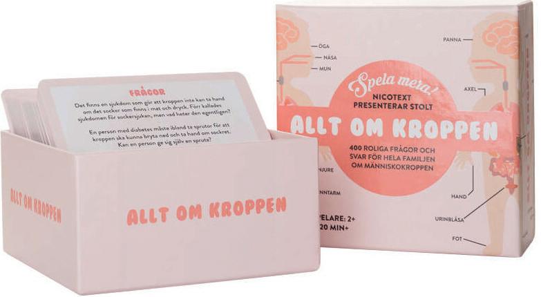 Varför har vi en navel och är det sant att astronauter kan bli åksjuka i rymden? Spela mera: Allt om kroppen är ett frågespel för barn som innehåller 400 lärorika frågor och svar om den fantastiska människokroppen. I varje svar får du veta mer om varje kroppsdel så att du får mer kött på benen!
