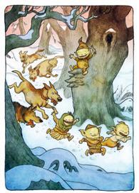 Allt börjar med att Teo och Bianca går vilse på frilu sdagen. Plötsligt be nner de sig i Svartskogen, men de är inte ensamma där. Vem lämnar stora fotspår på stigen? Vad vill korpen tala om för dem – och nns det verkligen genvägar i underjorden?
