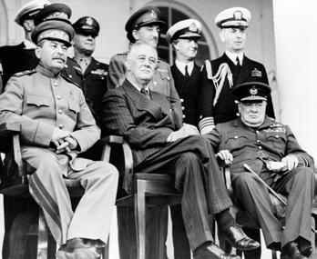 Josef Stalin, Franklin D. Roosevelt och Winston Churchill vid mötet i Teheran 1943.