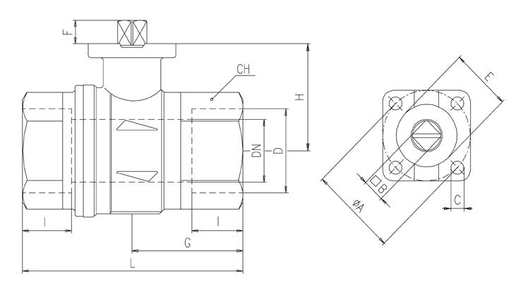 Ball seats and stem configuration of valves over DN shows the nominal flow diameter. Actual flow diameter complies with full port DIN 3357 part 4.