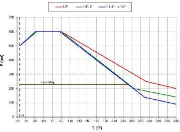 Working Pressure: 600 PSI up to 3/4" size, For 1" size up to 1 1/2" size: