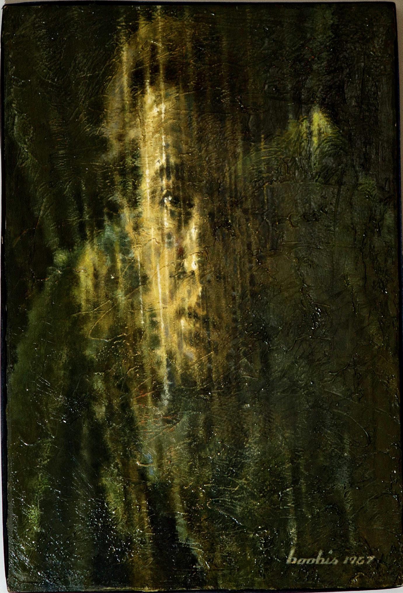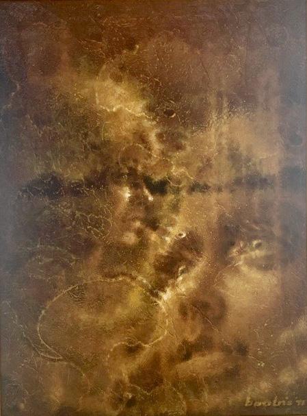 The aptly titled Children of God portrays man at war with himself. For Boobis, this conflict was epitomized by the racial struggles in America in the 50s and 60s. This painting was placed on loan to the Library of Presidential Papers in the early 70s with the expressed approval of the Metropolitan Museum of Art.