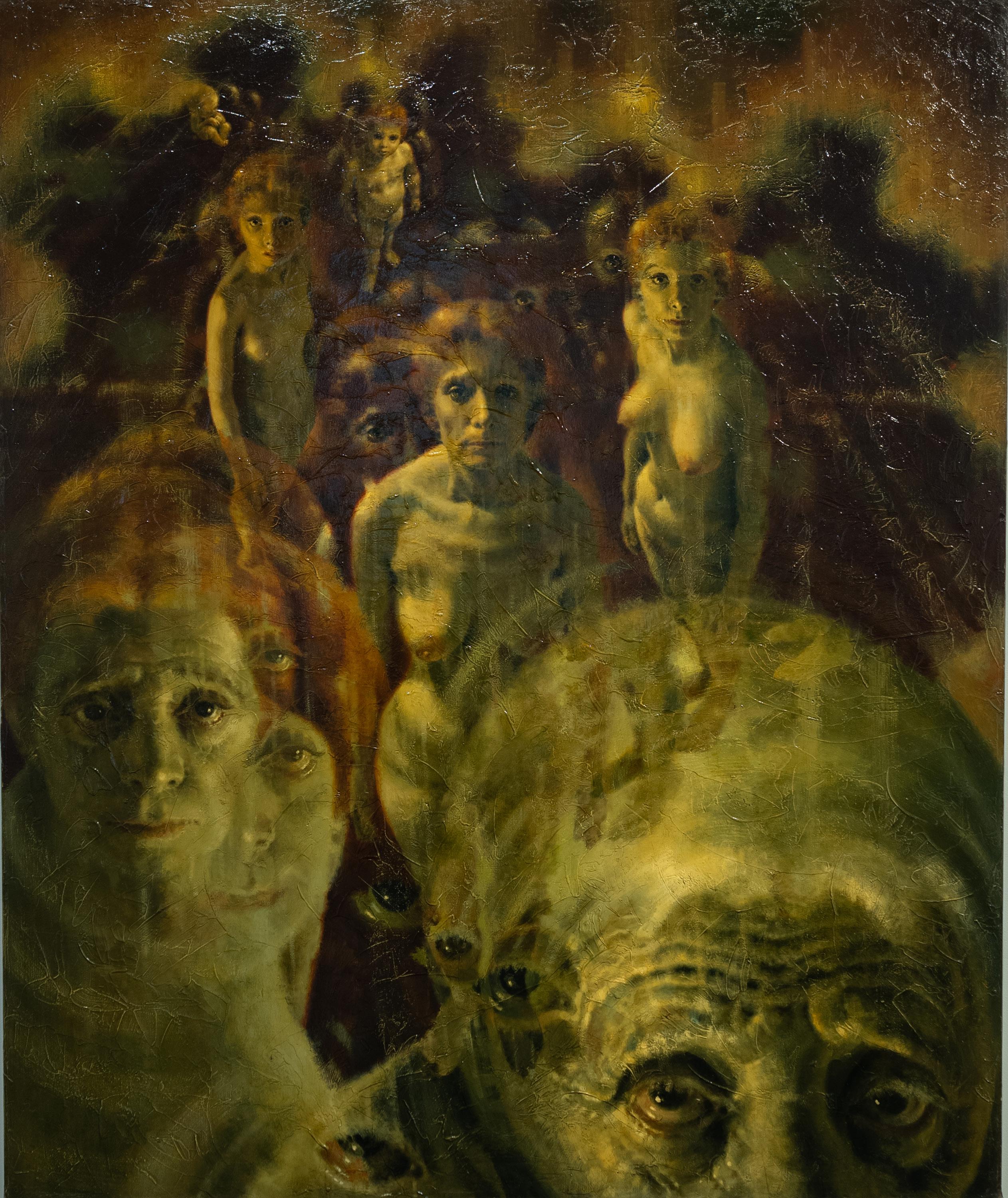 Portrait of a Female is Boobis’ most acclaimed painting. It was dedicated to, and inspired by his wife, Shawn Boobis, who was the love of his life. This painting is a depiction of the total life experience of a woman, from her fetal state to toddlerhood, to the flowering of her womanhood, to the rites of middle age, to her demise and her passage into the hereafter… This painting eliminates the concept of “the present”, depicting the full spectrum of one woman’s life captured in a single moment. The conception, birth, life, and approaching death. The complete range of the human experience.