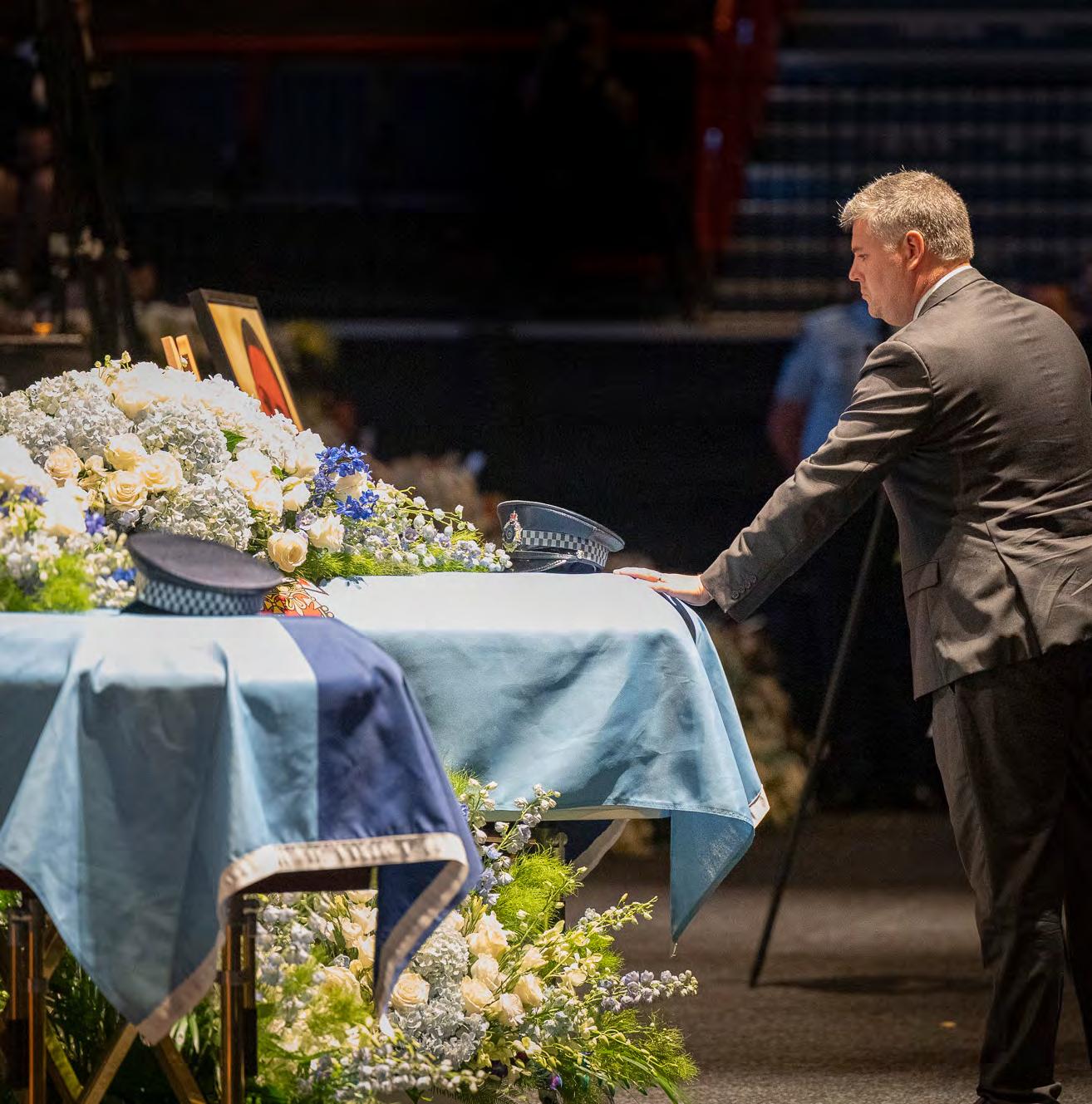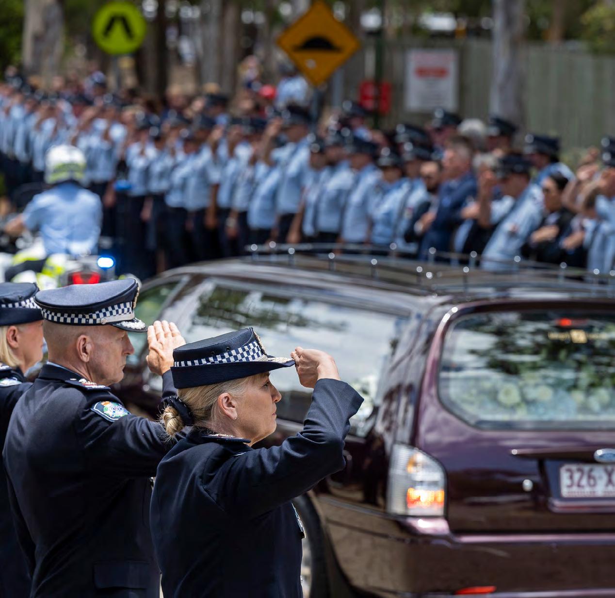 Thousands of mourners including QPS members, politicians and dignitaries attended a memorial service in Brisbane