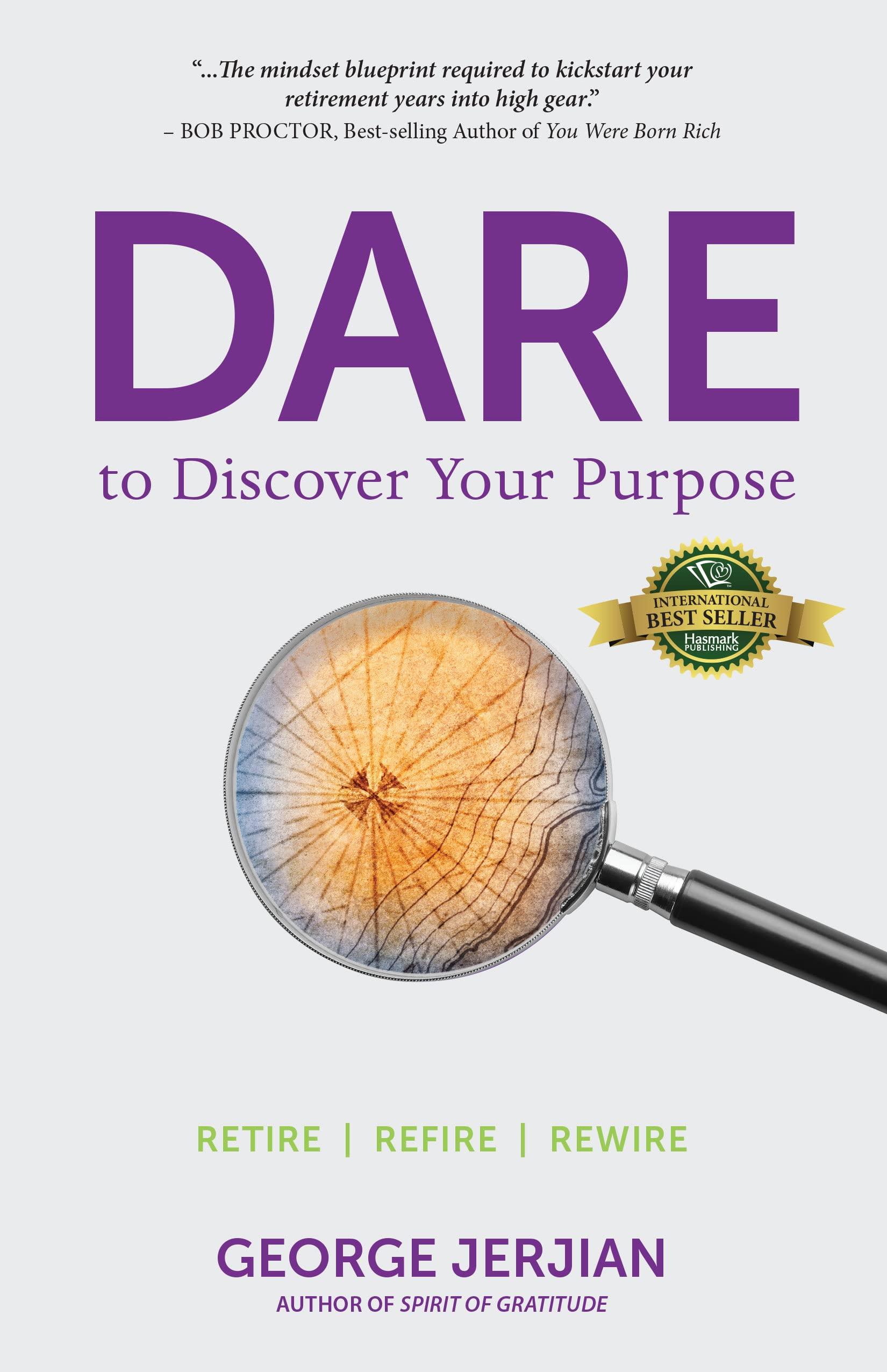 GEORGE JERJIAN is a mindset mentor, author, and speaker who retired after being given just six months to live by his doctor. Thankfully, the diagnosis was wrong and as soon as he could, he “ unretired” and set to work, helping his tribe of baby boomers do the same.George has a business degree from Bradford University in England and a master’ degree in journalism from New York University. He has been in business for over 40 years, working as a Chartered Marketer, a partner in US commercial real estate, and a financial adviser. He has authored 10 books, is an Emmy award-winning producer, a Distinguished Toastmaster, and founder of Retirement Rebellion. “ Winston Churchill was just hitting his stride in his mid-sixties when he was elected Prime Minister of Great Britain and led the Allied Forces into WW2. Colonel Sanders, at the age of 65, began franchising KFC using his first Social Security check. Dare to Discover Your Purpose provides the mindset blueprint require