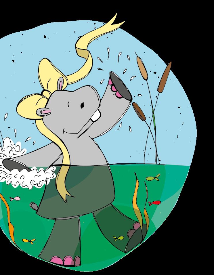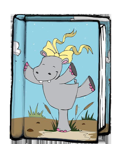 Grasshopper hears Hippo’s tears. He starts dancing around her feet. HOP! HOP!