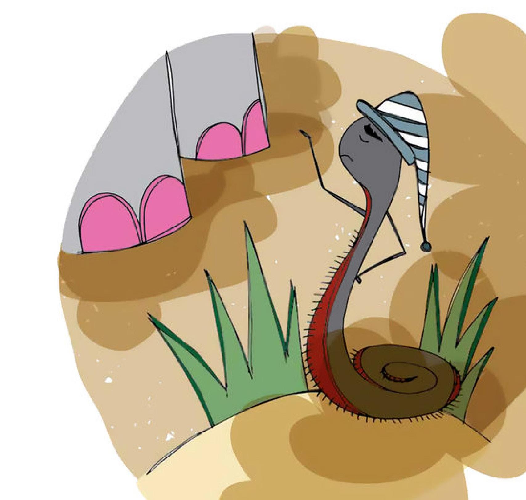 “You’re getting dirt on me!” says Shongololo, sleeping in the sand.