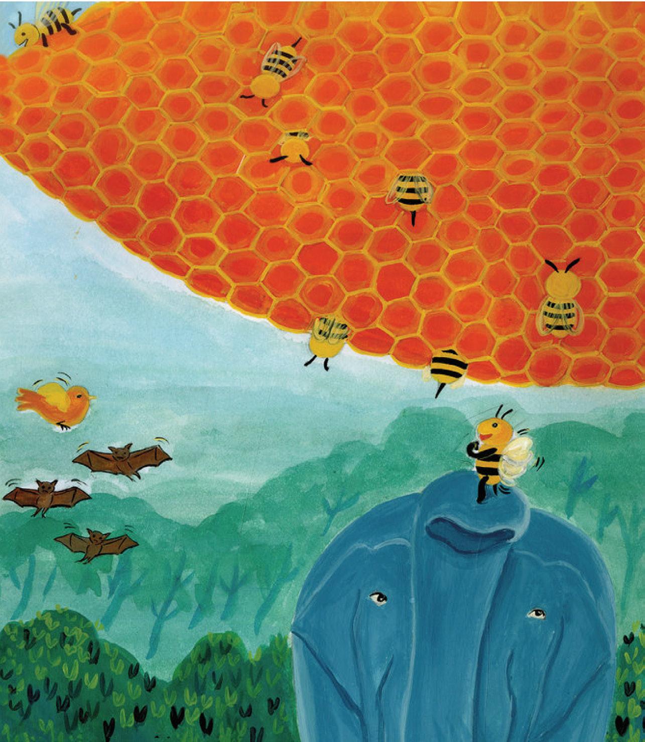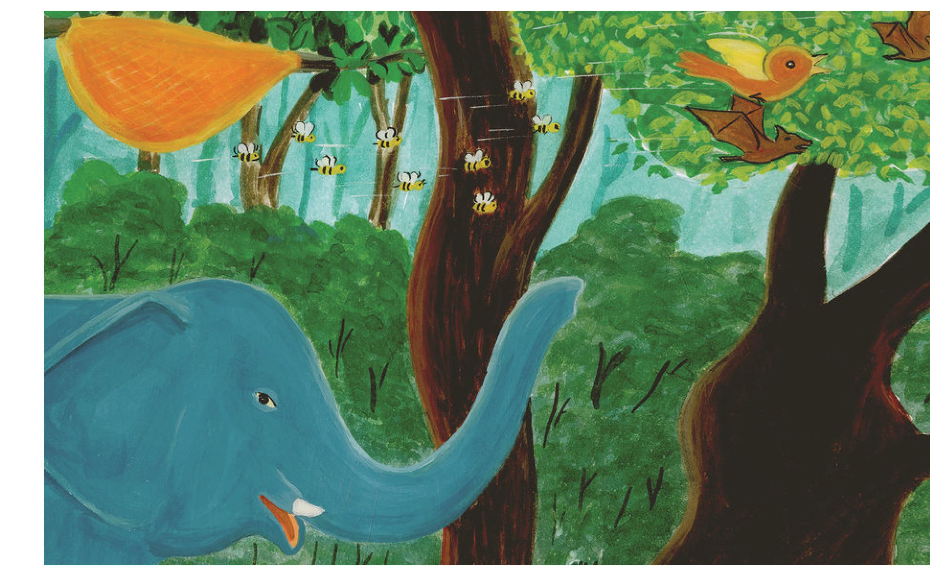 The Bee and the Elephant (English), translated by Celia Bolam, based on original story (Khmer), written by Long Ravy, illustrated by Try Samphos, published by Room to Read (© Room to Read, 2015)*