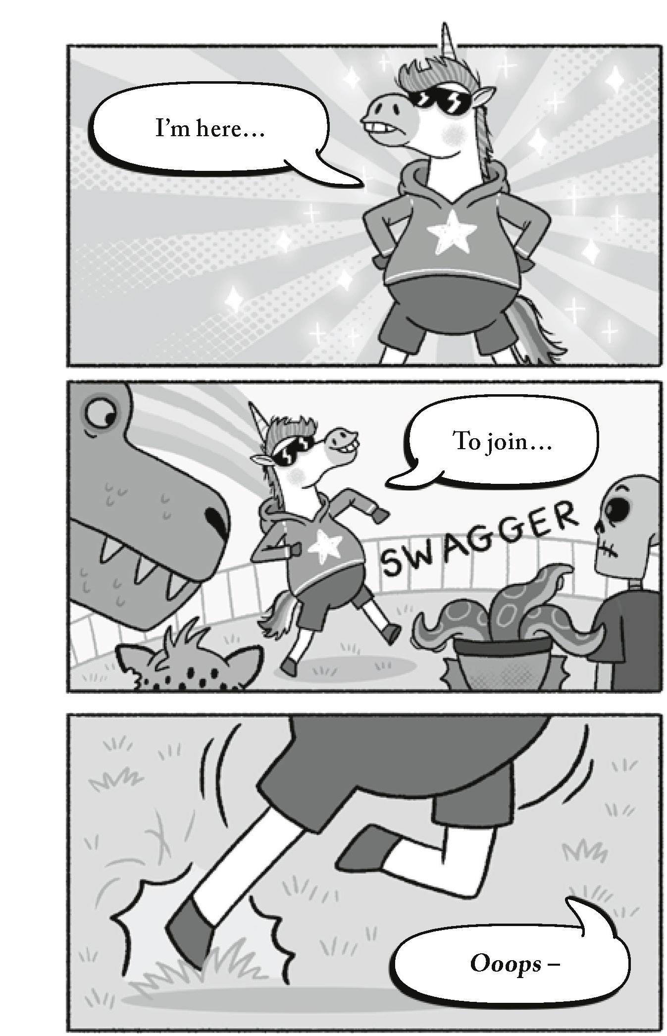 Every story has to have a new type of fantasy character (unicorns, ghosts, giants, etc.) and a new emotion to examine so that always dictates a lot of the story. On top of that, I just love magic, fantasy, ghosts and monsters, so everything I make always involves those. I then think about what I want to draw – I knew for the Excited Unicorn I wanted a superhero story, and for the Shy Ghost I wanted a haunted house. I then throw all those different things into an imaginary blender, and what comes out dictates a lot of the story!
