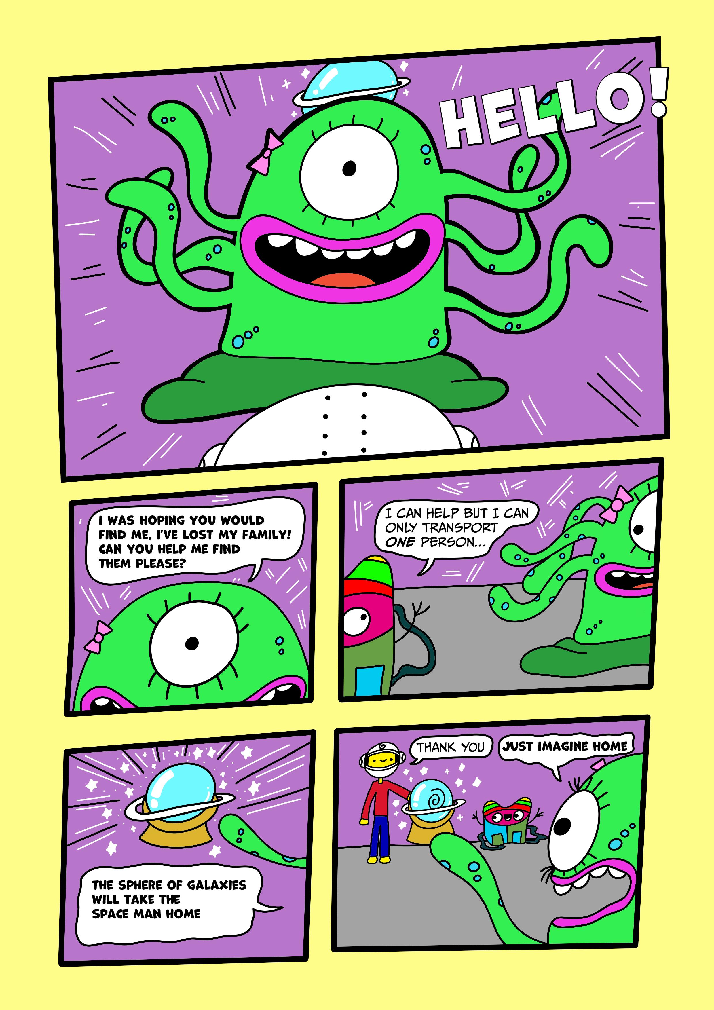 “| was so honoUred to be inVited bacK to ilLusTrate tHis seconD gRapHic novel editiOn of tHe sTory corNer magazine, to take colin on more exCitinG adVenTures anD inSpire oUr future piOneErS, arTisTs, sTorytelLerS, sCiEnTisTs anD influEnCerS. | hope yOu enJoY tHe joUrNeY anD feEl inSpired to make sToriEs of yOur owN!” - JaY