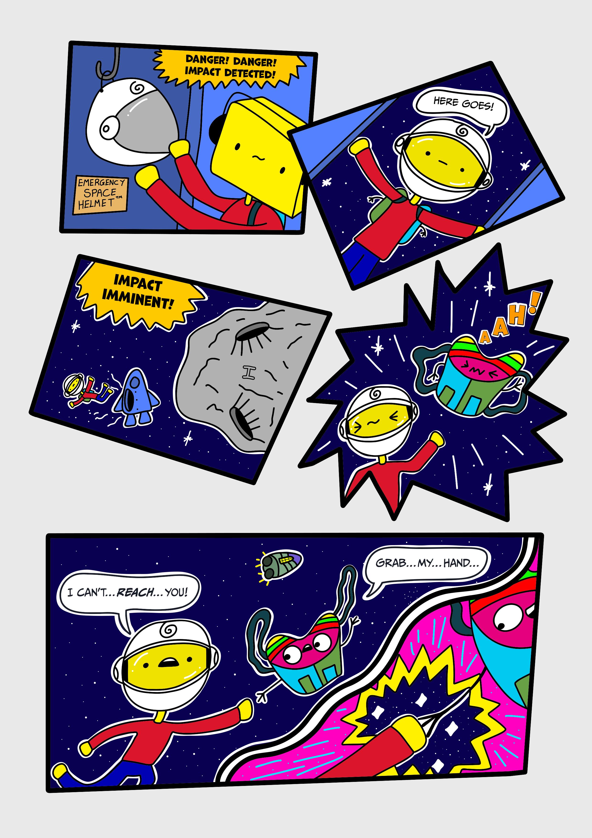 “| was so honoUred to be inVited bacK to ilLusTrate tHis seconD gRapHic novel editiOn of tHe sTory corNer magazine, to take colin on more exCitinG adVenTures anD inSpire oUr future piOneErS, arTisTs, sTorytelLerS, sCiEnTisTs anD influEnCerS. | hope yOu enJoY tHe joUrNeY anD feEl inSpired to make sToriEs of yOur owN!” - JaY