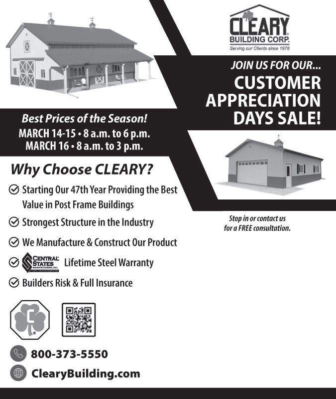 The pump is shipped directly to you! it’s that easy! Minnihans Tree Service Trimming • Removal • Stump Removal 24 Hour Storm Clean-Up • Bucket Trucks Fully Insured • Free Estimates • Senior Discount 815-703-2297 SPACE AVAILABLE! • Security Cameras • LED Lighting • Gate C A L L N O W C A L L N O W CALL NOW 8 1 5 - 5 4 4 - 5 8 0 0 8 1 5 - 5 4 4 - 5 8 0 0 815-544-5800 2252 Anderson Dr., Belvidere hammertimeselfstorage.com hammertimeselfstorage.com • Walls • Flat Work • Colored + Stamped • Skid Loader Work 8 1 5 - 8 8 5 - 3 2 5 5 o r 8 1 5 - 3 7 8 - 7 7 1 5 8 1 5 - 8 8 5 - 3 2 5 5 o r 8 1 5 - 3 7 8 - 7 7 1 5 CALL NOW FOR SPRINGSPECIALS! FREE ESTIMATES& FULLY INSURED B & K C O N C R E T E CONCRETE B & K C O N C R E T E B K CONCRETE bandkconcrete com bandkconcrete com bandkconcrete.com F o r Q u a l i t y Wo r k C a l l B o b K a h l e r F o r Q u a l i t y Wo r k C a l l B o b K a h l e r For Quality Work Call Bob Kahler 880 Belvidere Rd., Belvidere bcoins60@yahoo.com goldsilverjewelrycoin.com Mon-Fri 10 AM - 5 PM, Sat. 10 AM - 2 PM 815-547-7111 WE BUY GOLD/ SILVER JEWELRY, all foreign gold/silver coins, & collectible coins, proof sets, mint sets, single coins & sterling silver. BELVIDERE COLLECTIBLE COINS WE PAY 10% MORE For Your Gold & SilverJewelry With This Ad. FARM HELP WANTED: CDL preferred, Tractor driver, mechanic. Pay based on experience, Kirkland area, 815-405-7494. NEED PAINTING?