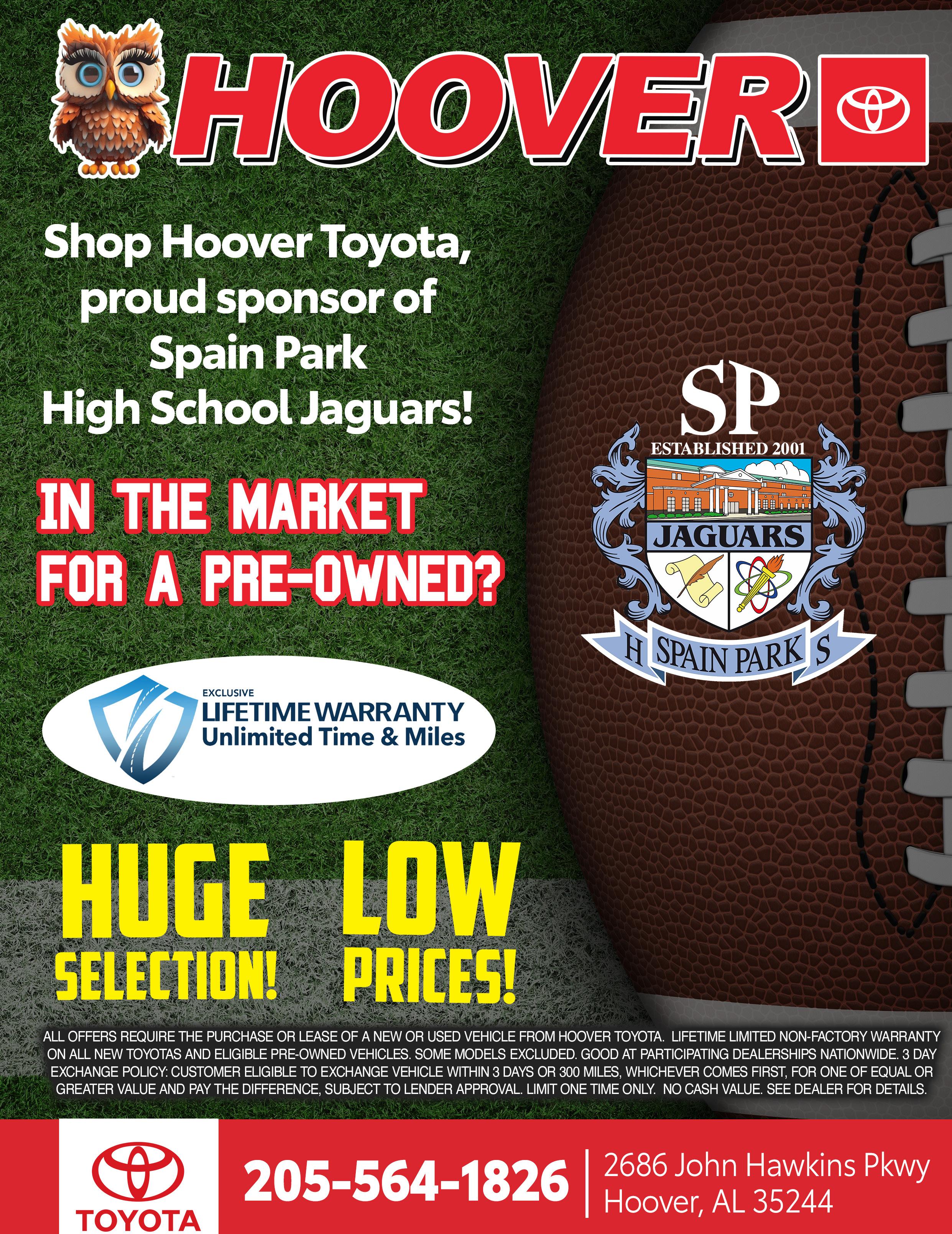 Welcome to Spain Park High School! On behalf of the administrative team and the faculty and staff of Spain Park High School, I would like to welcome you to Robert O. Finley III Field at Jaguar Stadium. Tonight’s game, a showcase of countless hours of preparation, practice, and hard work, would not be possible without the support of our Board of Education, Superintendent Dr Kevin Maddox, and the Spain Park Community.