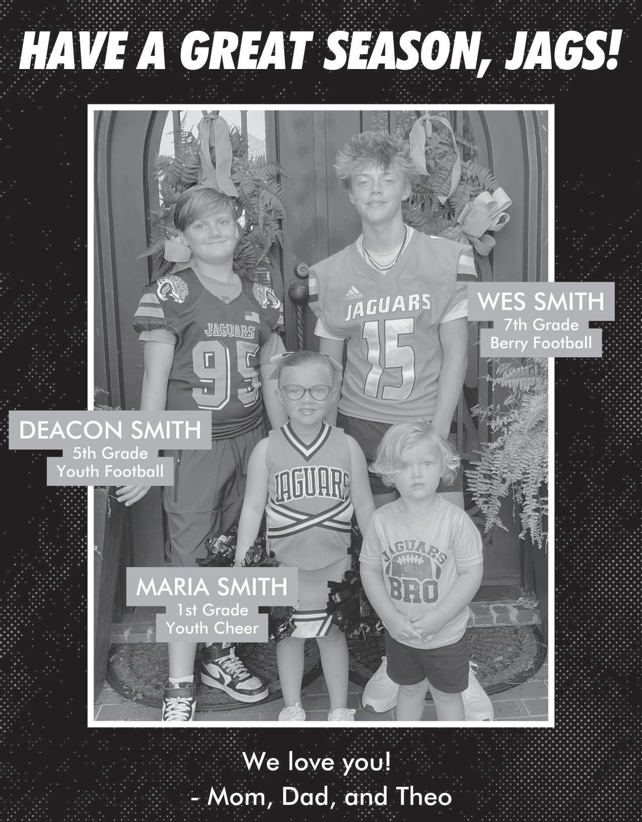 Jack, Henry, and Maggie Kate, Best of luck this season to our favorite JAGS! We can’t wait to watch you all on the field. Love, Mom & Dad