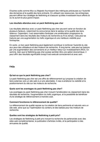 Cela leur permet de se concentrer sur d'autres aspects de leur activité tout en s'assurant que leur présence en ligne est optimisée. De plus, un pack Netlinking pas cher peut offrir des résultats significatifs en termes de positionnement sur les moteurs de recherche. En intégrant des liens provenant de sites pertinents et bien référencés, les entreprises peuvent améliorer leur autorité et leur crédibilité aux yeux des algorithmes de Google.