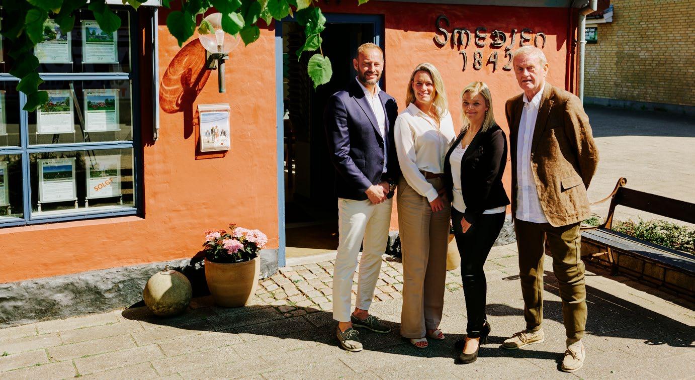 Derfor startede han en ny ejendomsmæglerforretning i Hornbæk, hvor fokus på salg af liebhaverejendomme blev omdrejningspunktet. Med tiden blev der behov for flere medarbejdere, og i 1995 startede sønnen, Rasmus, i forretningen. Dette gav mulighed for at udvide forretningsområdet til at varetage salget af alle typer ejendomme her på Nordkysten. Det har den familieejede ejendomsmæglerforretning nu gjort med stor entusiasme, engagement og professionalisme i snart 40 år. I dag ligger vores forretning i ”Den Gamle Smedje” i hjertet af Hornbæk, og medarbejderstaben består i dag af fire erfarne ejendomsmæglere.