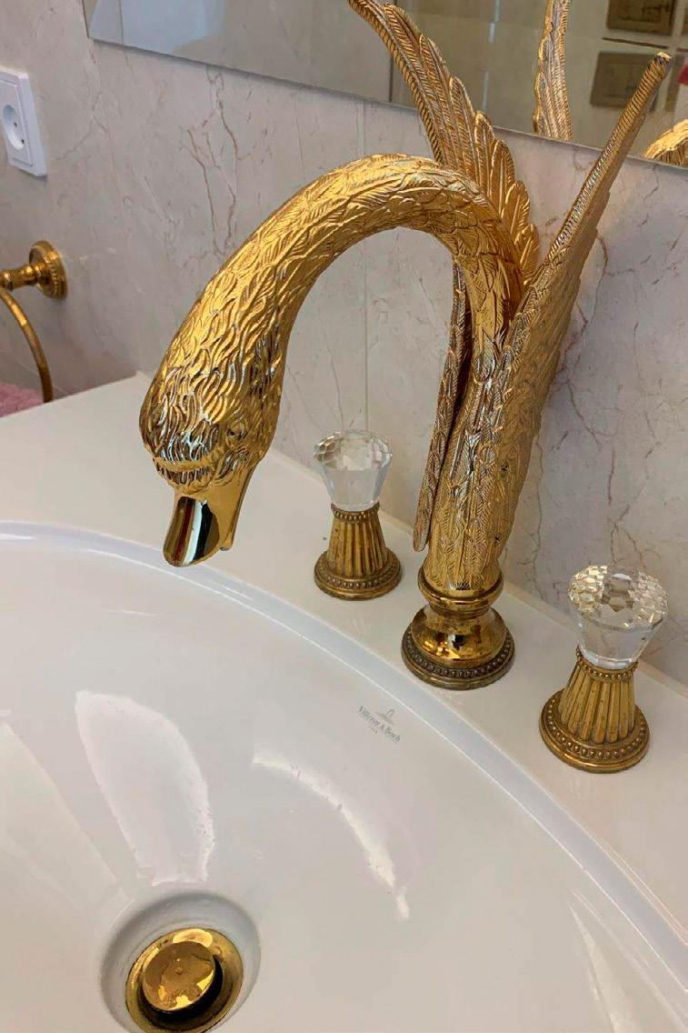 Billedet viser en 24 karats vandhane med krystal håndtag