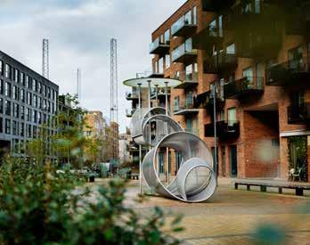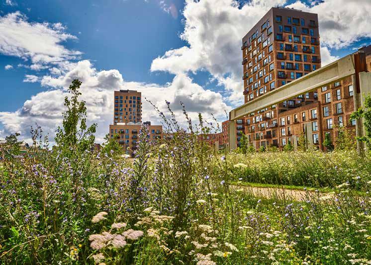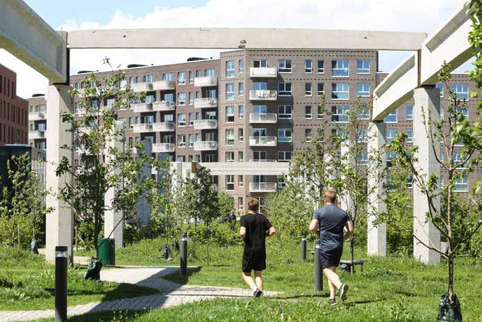 Det var vigtigt at skabe en bydel, der ikke kun var levende om dagen og blev en soveby om aftenen,” forklarer HansBo, som også har haft fællesskabet blandt beboerne for øje i processen: ”Vi har forsøgt at skabe fællesskaber på tværs af området med fællesområder, hvor man kan møde sin naboer.