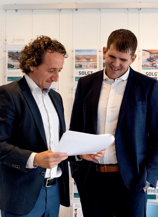 vores kunder. Vi ved næsten altid, hvordan vejen ser ud, når kunderne ringer ind,” smågriner Jesper Hougaard Andersen. Det skal dog ikke lyde som om, at der hviles på laurbærrene – Jesper Hougaard Andersen har i mange år haft fokus på at fremtidssikre forretningen - blandt andet i forbindelse med sin rekruttering af medarbejdere: ”Vi skal naturligvis følge med tiden. Jeg har fået Casper og Janus med på holdet, for at de kan hjælpe med at forny butikken og komme med nye inputs. En god kombination af erfaring og de nyere redskaber, der er til rådighed nu til dags,” forklarer Jesper Hougaard Andersen. Her kan man med fordel nævne, at danbolig har intet mindre end to apps – ’Min danbolig app’, hvor man kan følge sit boligsalg og blandt andet følge med i fremtidige fremvisninger. Her får man en besked, når mægleren aftaler