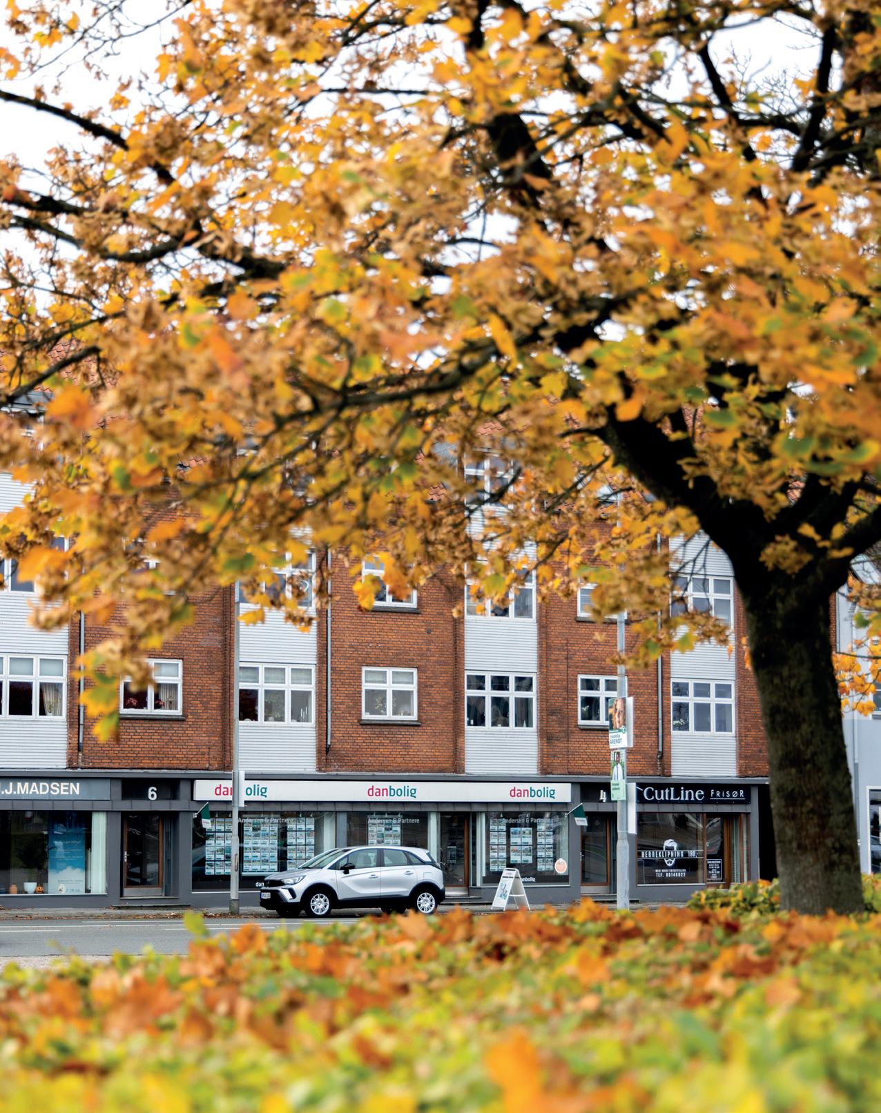 hurtigt ind i centrum og slippe for at bo i de mest stressede områder. En anden stor fordel er jo naturen og stranden, der ligger meget tæt på. Det er helt klart et kæmpe plus for området,” mener Jesper. Der gemmer sig bestemt også andet end natur i skovene syd for Aarhus, man kan også være heldig at få en magisk tur på Ceres Park, hvor ”De Hviie” fra AGF holder til. Jesper og hans kollegaer ser da også en stigende tendens til, at aarhusianerne er villige til at flytte lidt længere ud af byen: ”Aarhus vokser hele tiden, så lige pludselig er der for eksempel ikke så langt fra Viby Torv til midtbyen. Vi ser en tendens, hvor man er mere villig til at flytte et lille stykke ud af byen,” beretter Jesper.