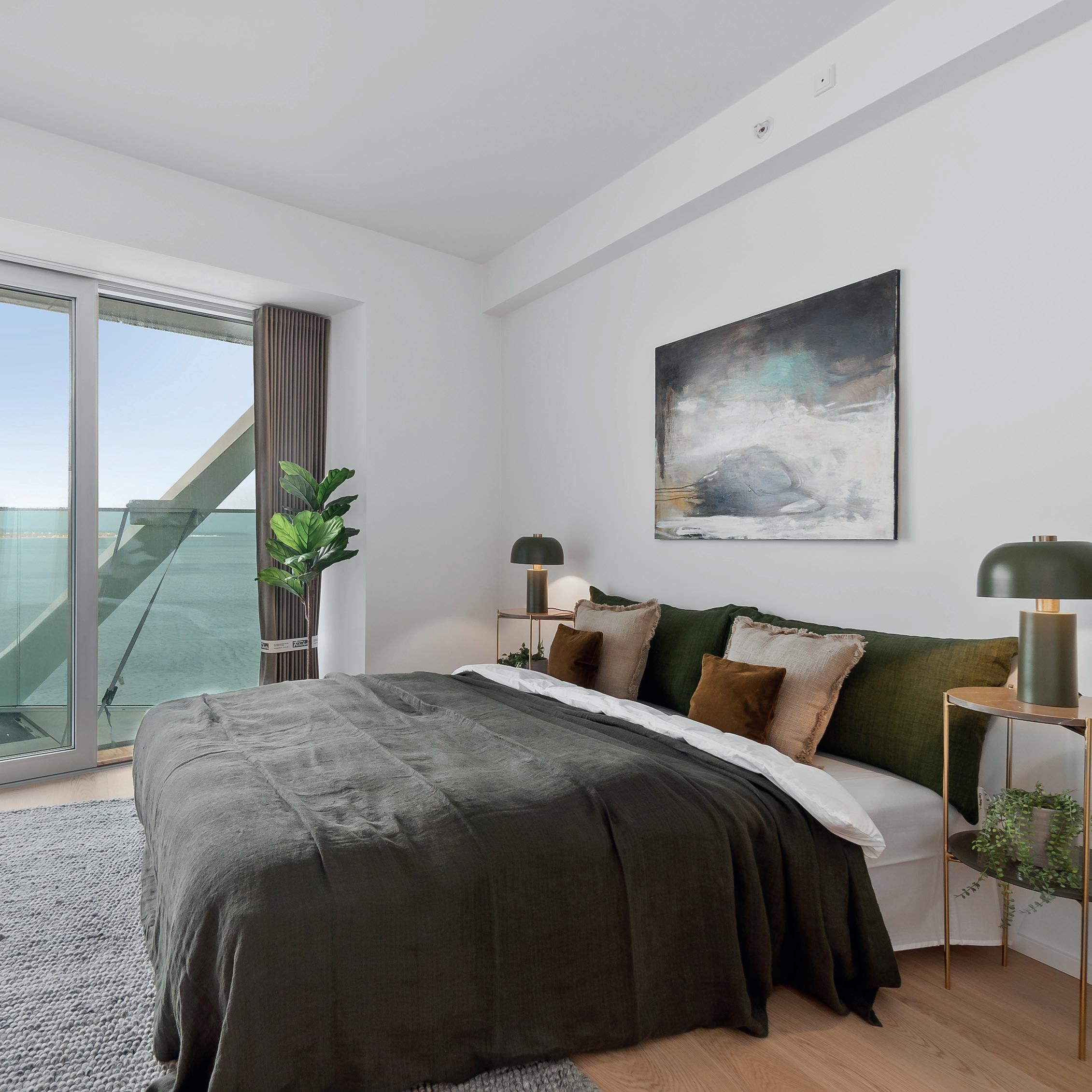 den skønneste natur, herunder både skov og strand. Her findes mange små specialbutikker, hvor man blandt andet kan være heldig at finde keramik, genbrugstøj og specialiteter til ganen. Når det kommer til handel, så er Kridthøj Torv det absolutte centrum i Højbjerg. Her findes alt, hvad man skal bruge. Når det skal være lidt ekstra lækkert, så er der også mulighed for at smide god ost, is, kage og brød i kurven hos de forskellige specialbutikker, der har til huse på torvet. Hvis der stadig mangler noget i kurven, så er der kun små fem kilometer ind til centrum af Aarhus. Når dagens indkøb er klaret, så kan man bruge resten af dagen i Højbjergs naturskønne omgivelser. Et oplagt udflugtspunkt er Bellehage Strand, en glimrende badestrand med en smuk udsigt udover bugten. Udover den flotte strand og udsigten, så kan man også nyde kunstværket Den Uendelige Bro, der også fungerer som badebro lige ud for Varna Palæet. Et tilløbsstykke uden lige.