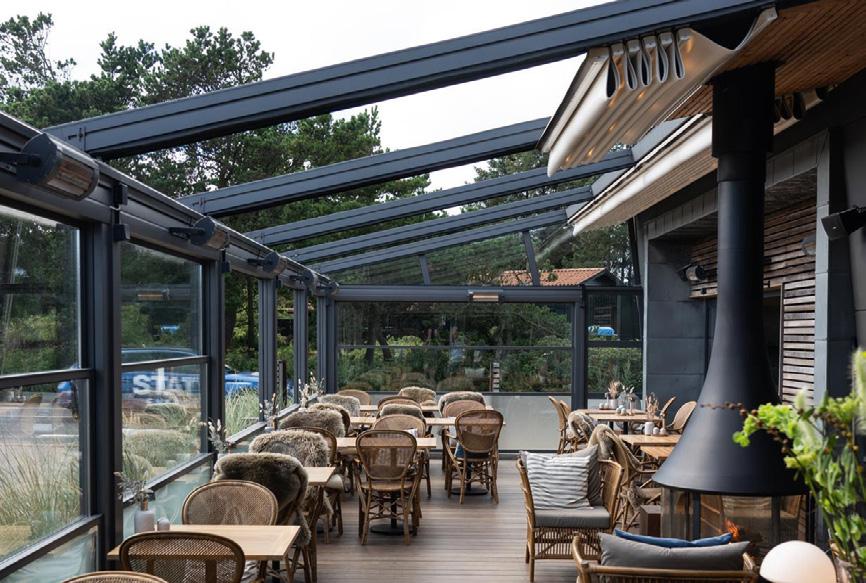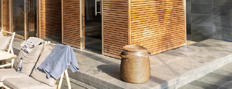 Denne type har alt det, du kender fra NaturSuite 1.0, men er tilført lidt ekstra luksus, da de desuden har sauna og pejs. Her er en hyggelig overdækket terrasse med bænk og bord, og derudover er der en skøn afskærmet afdeling med liggestole ved den udendørs spa.