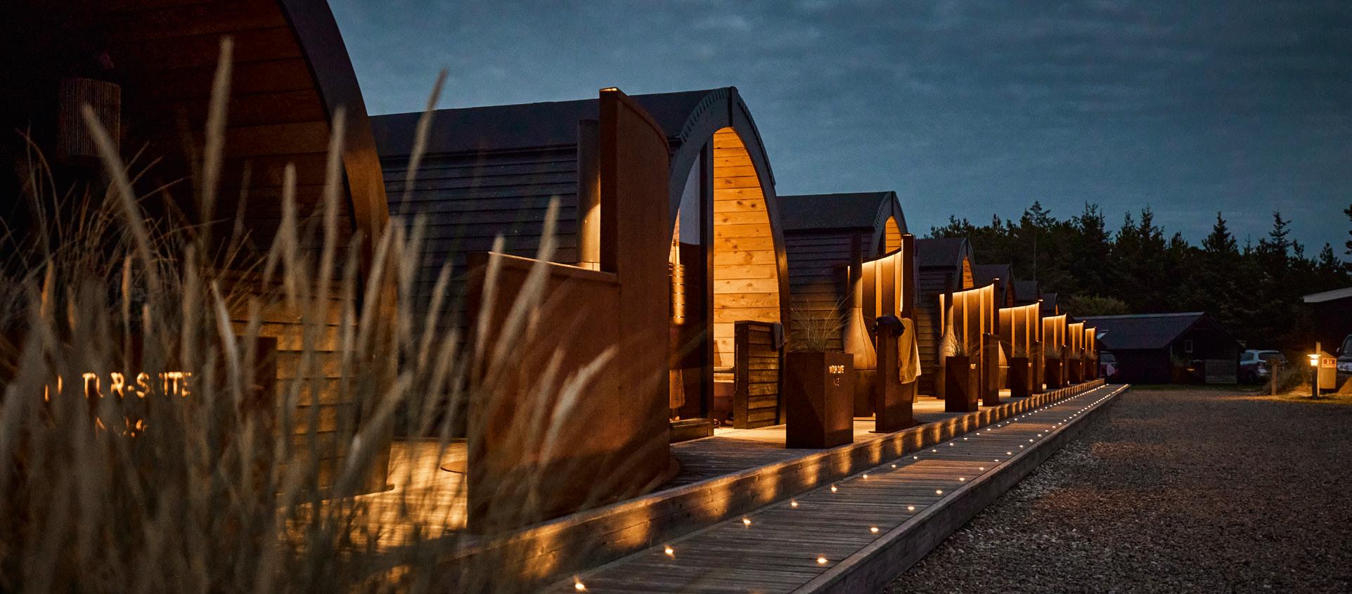 Fra klassiske campinghytter til arkitekttegnet lækkerhed. Vi har ikke mindre end fire forskellige typer hytter, reder, suites, så der burde være noget for enhver smag. De er alle moderne og velindrettede.