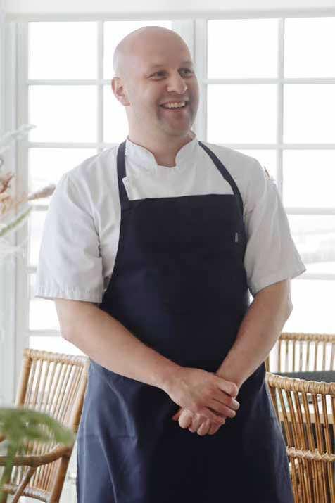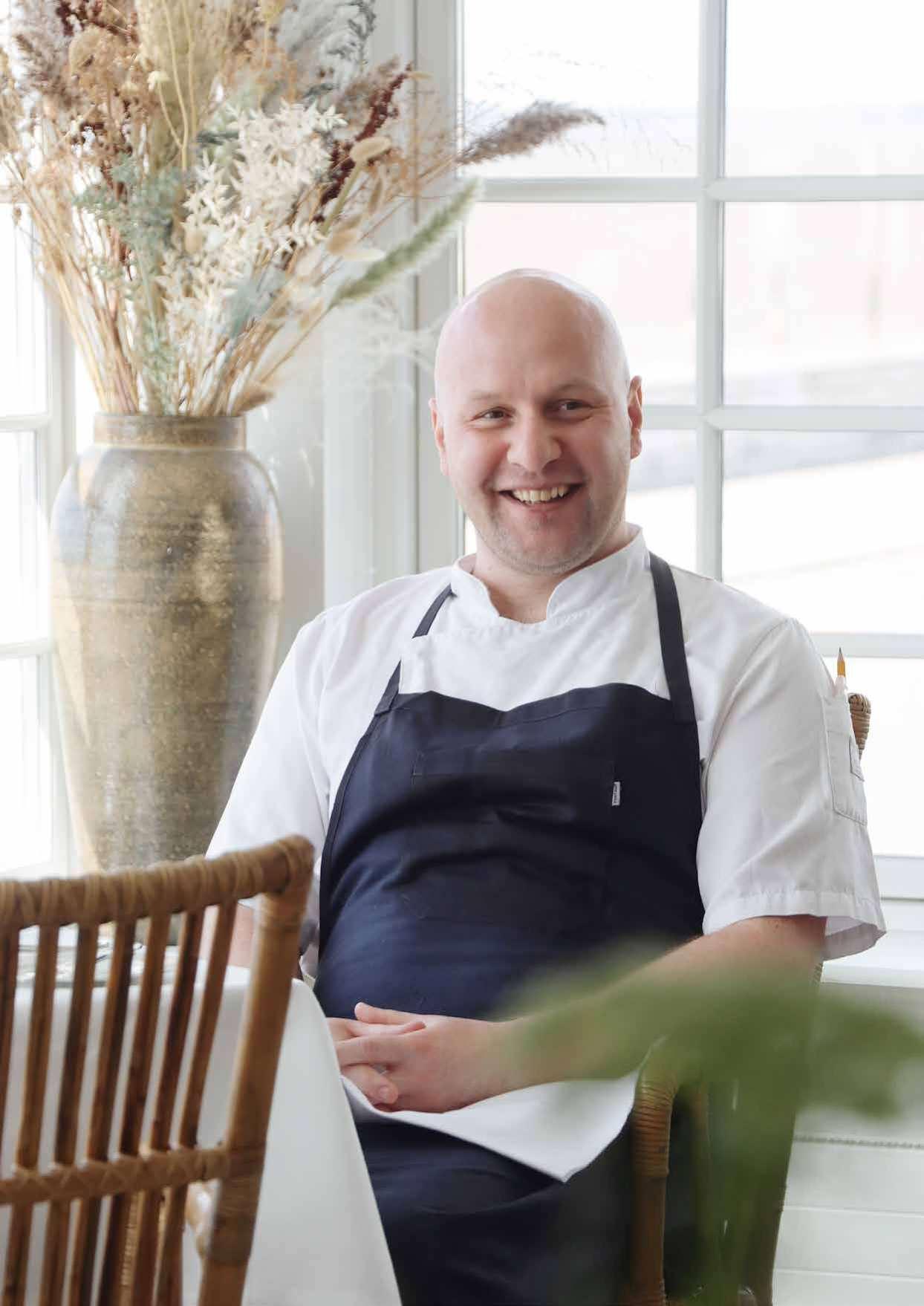 Køkkenchef og forpagter Søren Pilegaard lægger ikke fingre i mellem, når det kommer til det gastronomiske udtryk på hotellet – det skal være så lokalt så muligt og forankret i både byens og hotellets historie.