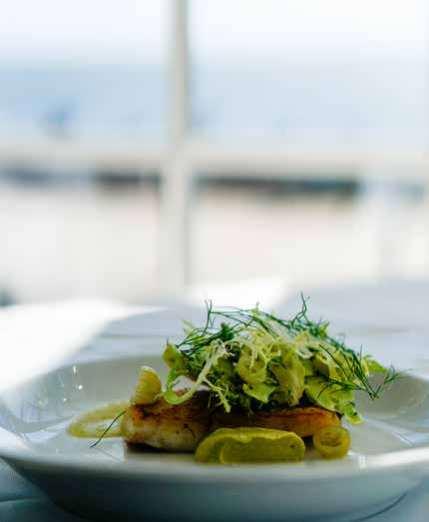 Det kommer nok ikke som den store overraskelse for særlig mange, at Esbjerg har en stolt fiskeritradition. I starten af 1900-tallet var Esbjerg en af de største fiskerihavne i Danmark – en epoke, der kulminerede i 1970, hvor der var 370 industritrawlere og 230 snurrevodskuttere på Esbjerg Havn. De 600 kuttere beskæftigede flere end 2000 fiskere. Hvis man går endnu længere tilbage, så spiller Hjerting også en stor rolle i historien om fiskeriet, hvilket Søren naturligvis har for øje i sit arbejde: ”I sin tid var Hjerting Danmarks største landingsplads for kuller og pighvar, så området bærer på nogle gode historier omkring fiskeriet. Nede på stranden, ved vores bådelaug, er der rejst en statue med en fisker, der holder en pighvar og en kuller i hver sin hånd. Et flot minde om de fiskere, som arbejdede, boede og levede af fiskerlejet her. Et fiskerleje som i sin storhedstid var et vigtigt knudepunkt for områdets maritime aktiviteter. Det er sådan nogle historier, som vi gerne vil dyrke videre i vores mad, så når det er sæson for pighvar og kuller, så er det jo oplagt, at vi har det på kortet og fortæller de her historier til vores gæster, så de får en helhedsoplevelse med god mad, der fortæller noget om Hjerting og hotellet,” forklarer Søren.