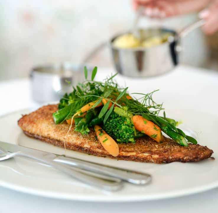 4. Lad en god klat usaltet smør bruse op på en pande, steg fisken hel ca. et til to minutter på hver side.