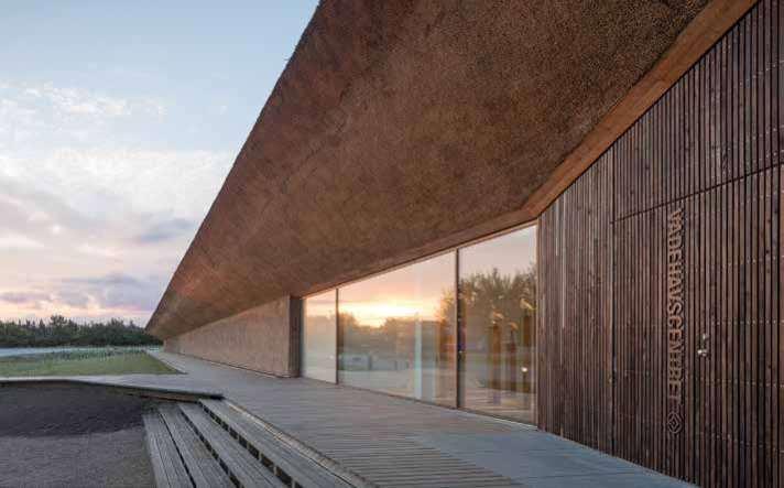 VADEHAVSCENTRET er tegnet af arkitekt Dorte Mandrup, hvilket blev hendes gennembrud på den internationale scene. Centrets æstetik kan bedst beskrives som unik, særpræget og i pagt med naturen. Specielt centerets tag går i spænd med omgivelserne – det er nemlig både tækket på væg, tag og undertag, hvilket gør centret til det første offentlige hus, der er tækket i Danmark.