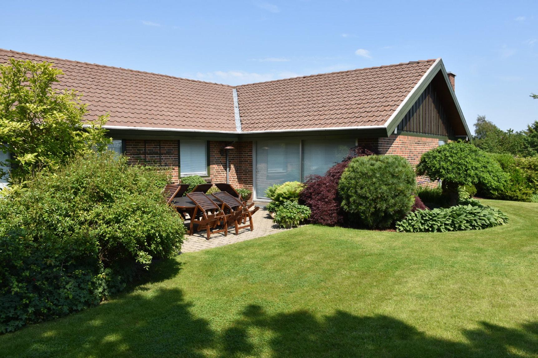 En nyslået græsplæne og velplejede omgivelser giver et godt førstehåndsindtryk.