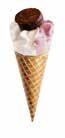 Bourbon vanilje- og jordbærflødeis i en sprød vaffel med dansk flødebolle i toppen. 52122
