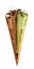 Hasselnøddeis og pistacienøddeis en sprød vaffel og sprøde nødder på toppen.