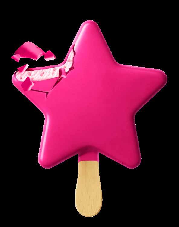 Barbie-isen er skabt til at blive set – og valgt. Den stjerneformede is kombinerer pink pineapple-smag med hindbærknas og hindbær-overtræk, og isen afspejler det moderne Barbie-univers: kapow-farver, kreativitet og stolt selvudfoldelse.