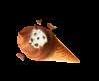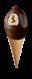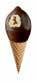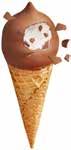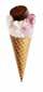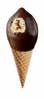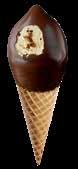 Sprød vaffel med karamelflødeis, chokoladestykker og karamelsauce. Toppen er dyppet i mørk chokolade. 52126