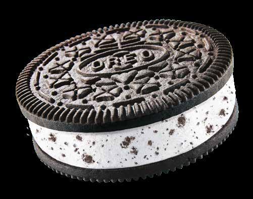 Oreo fås også som scoop i en cookies & cream-udgave med kiksstykker blandet i en cremet base. Visuelt og smagsmæssigt matcher is-sandwichen den originale Oreo. Som et af verdens mest kendte brands har Oreo en stærk salgsfordel: I generationer har børn, unge og voksne været vilde med Oreo.